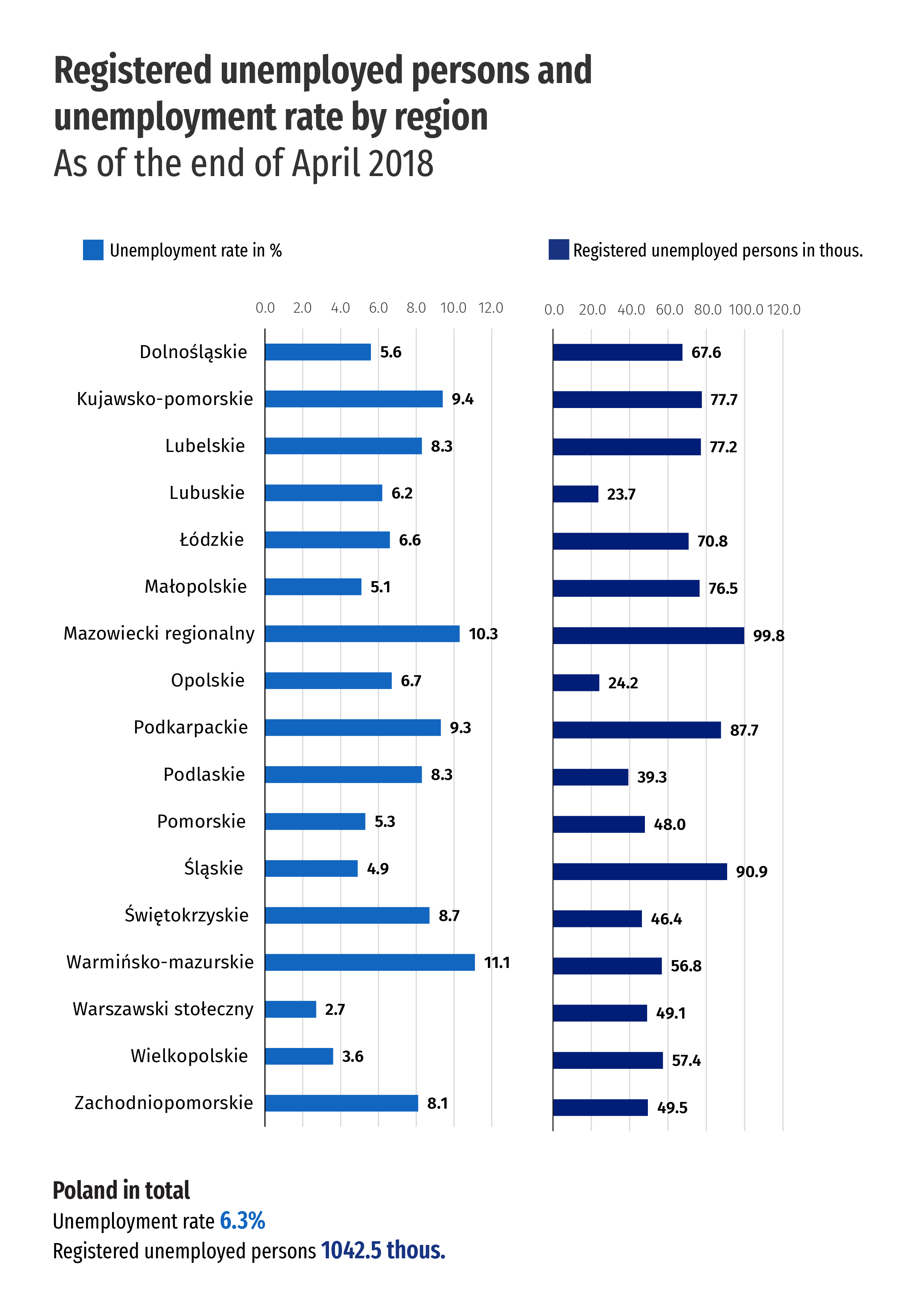 - Registered unemployed persons and unemployment rate by voivodships, subregions and powiats. As of the end of December 2017