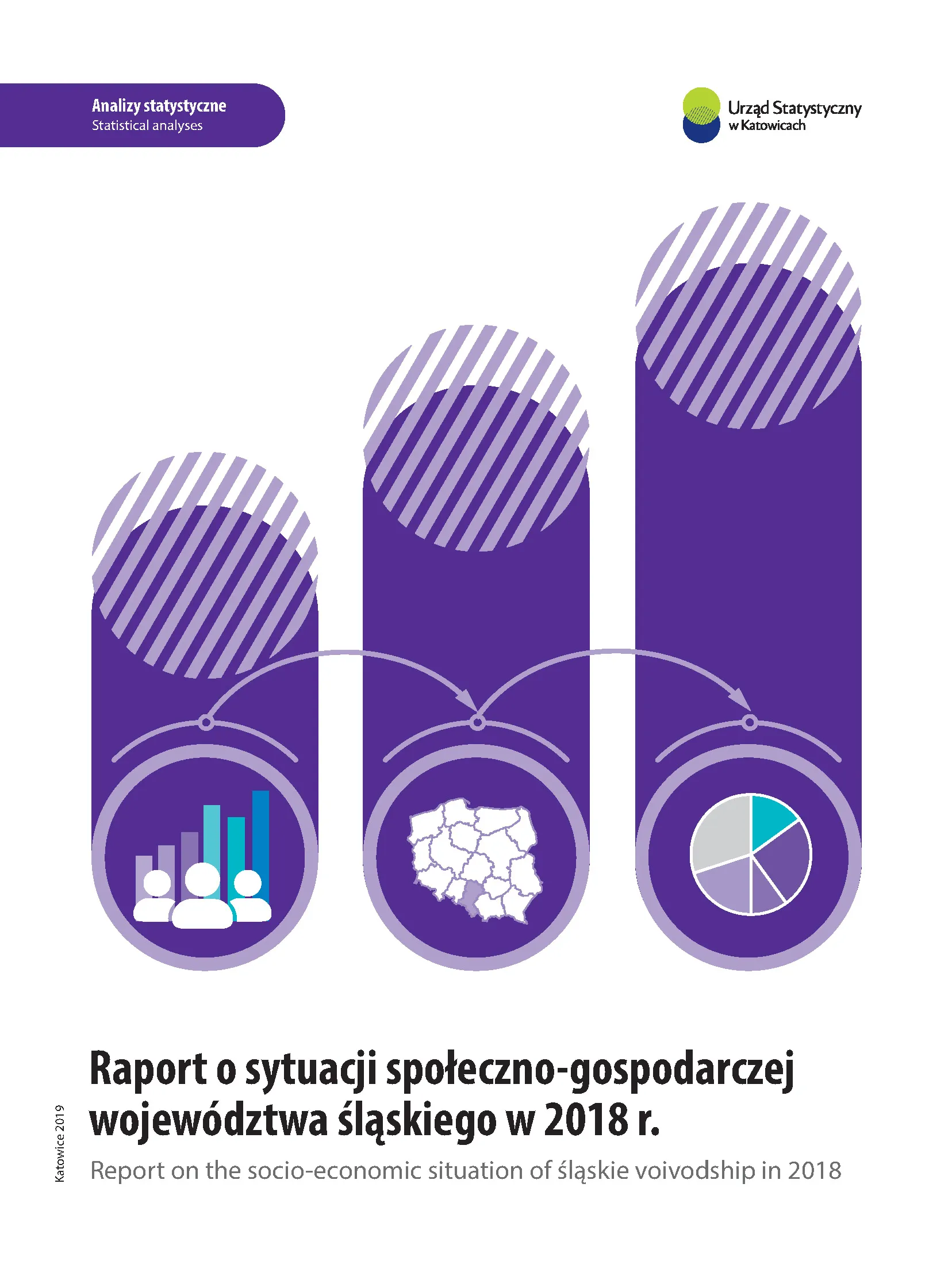 Publication presents an analysis of occurrences relevant from the point of view of socio-economic development of Śląskie Voivodship concerning i.a. demography, labour market, wages and salaries, social benefits, prices, industry, construction, agriculture, internal market, financial results of non-financial enterprises. Each of the 14 thematic chapters includes a concise, analytic commentary enriched with tabular and graphic form of data presentation in the extended retrospection 2010-2018. Selected categories are presented in dynamic terms and in relation to the country. Some data are presented in the breakdown by subregions and powiats for a more complete illustration of territorial differentiation. What is more, Śląskie Voivodship is presented on the background of the country and on the background of other voivodships. At the beginning of the publication, basic tendencies in social and economic areas are described. The entire publication is completed by the general notes at the end. The Annex to the Report is composed of review tables presenting selected information on Śląskie Voivodship in 2005, 2010 and 2012-2018 and selected data by months of 2017 and 2018.