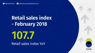 [1] Data concerns trade and non-trade enterprises employing more than 9 persons. Groups of enterprises were created on the basis of the Polish Classification of Activities (PKD 2007) and a given enterprise is included to a specific category by predominating kind of activity and according to its present organizational status in mentioned period. The recorded changes of rise or fall of the volume of retail sales in particular groups of enterprises activity may result from a change in the predominating kind of activity and organisational changes (e.g. a merger of enterprises). This does not have impact on the dynamics of the total retail sales.