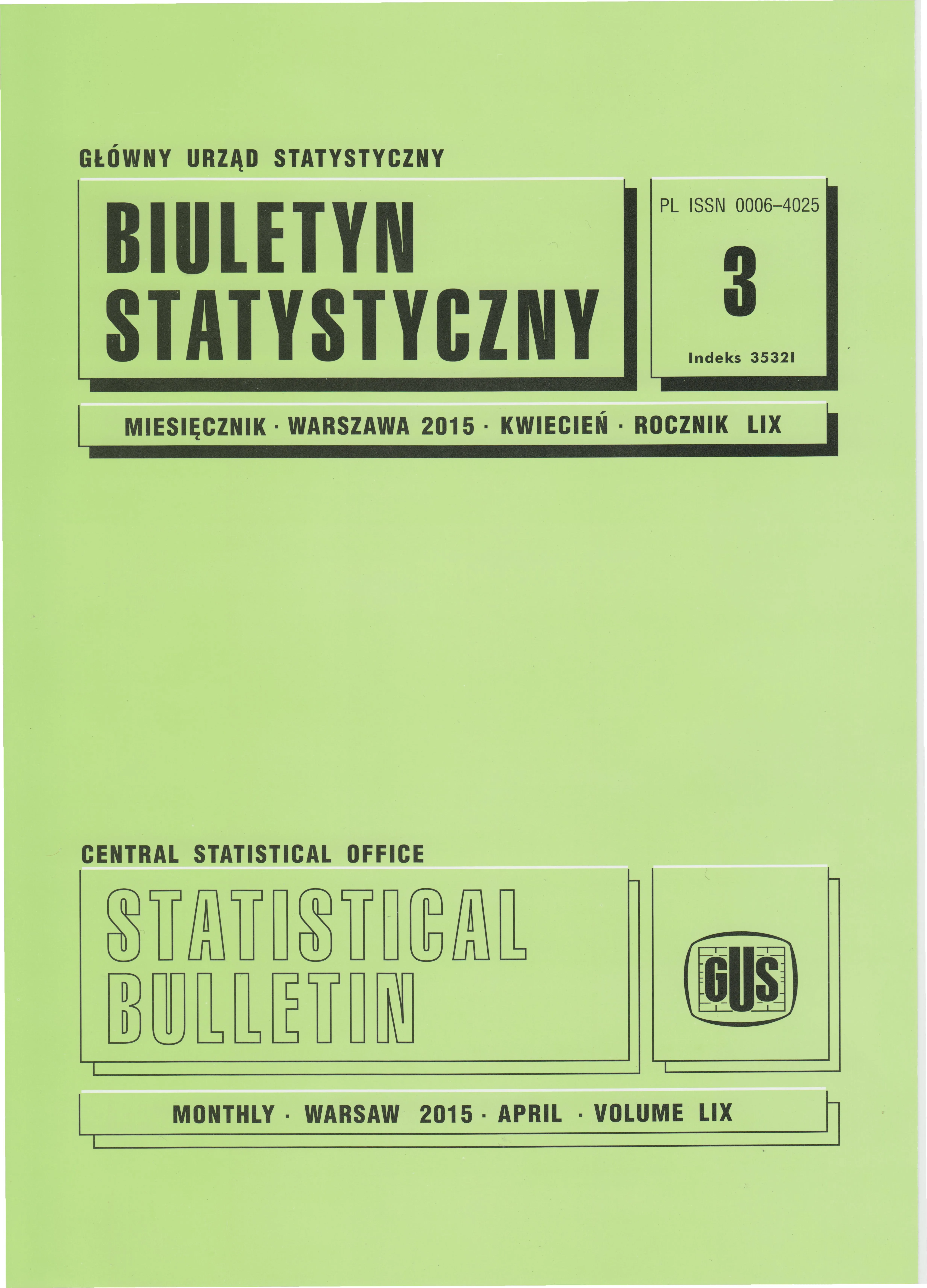 It contains basic indices of the socio-economic situation of the country, presented in the monthly, quarterly and annual series, including, among others, the national accounts, information on demography, the labour market, wages and salaries, social benefits, prices, money supply, public finances and finances of non-financial enterprises, investment outlays, agriculture, industry, construction, transport, domestic and foreign trade, along with monthly or quarterly data characterising the socio-economic situation of voivodships and EU countries.
