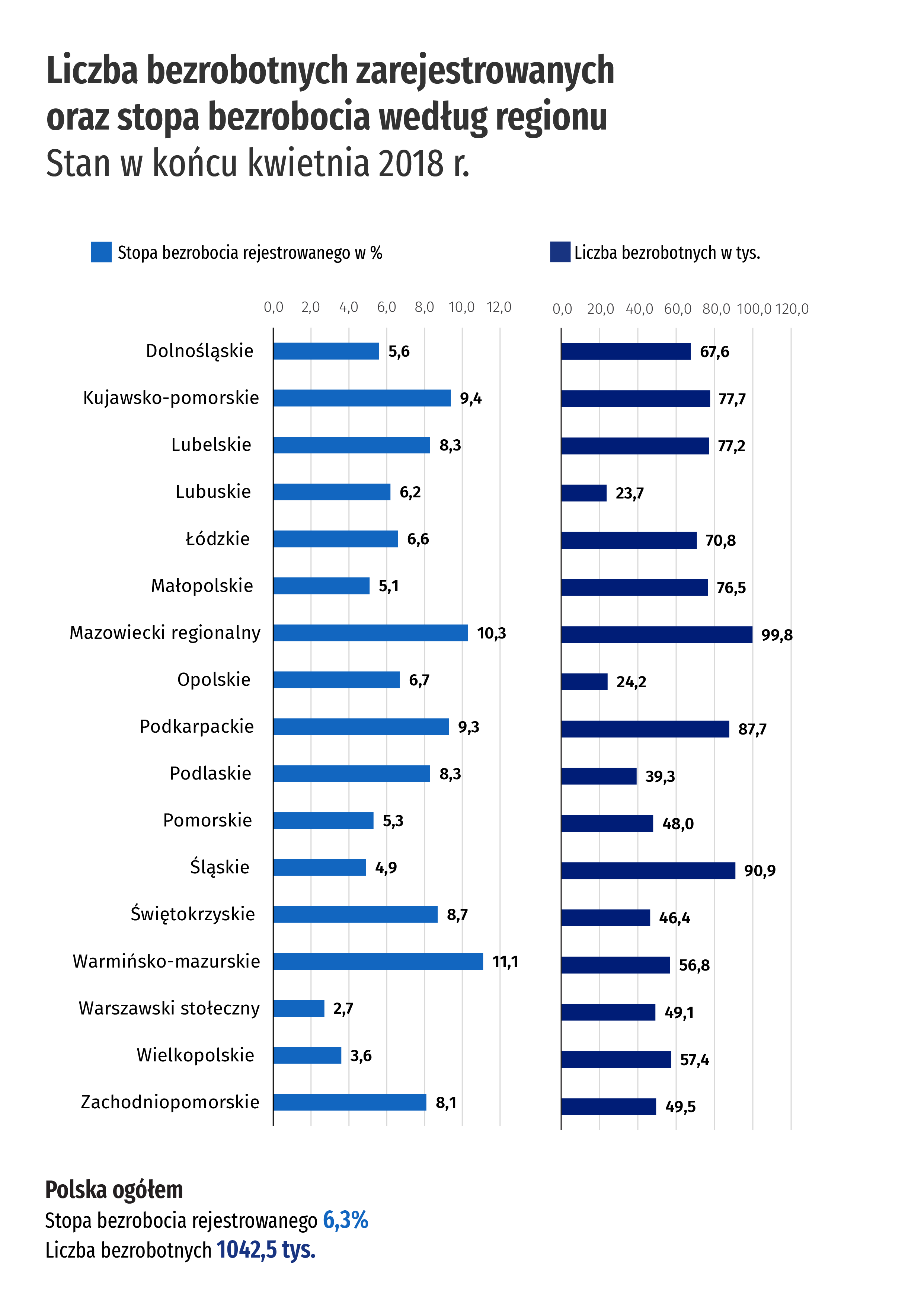 Bezrobotni zarejestrowani i stopa bezrobocia. Stan w końcu kwietnia 2018 r.