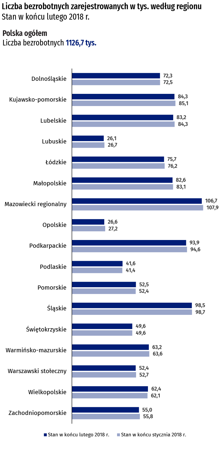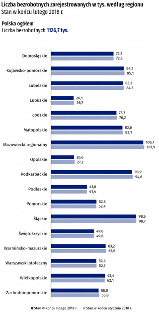 Bezrobotni zarejestrowani i stopa bezrobocia. Stan w końcu lutego 2018 r.