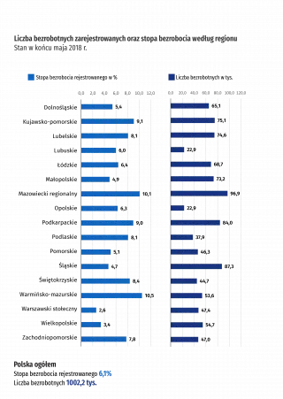 Bezrobotni zarejestrowani i stopa bezrobocia. Stan w końcu maja 2018 r.