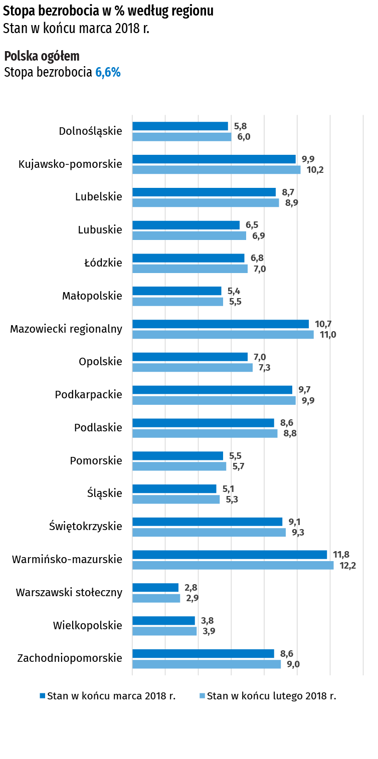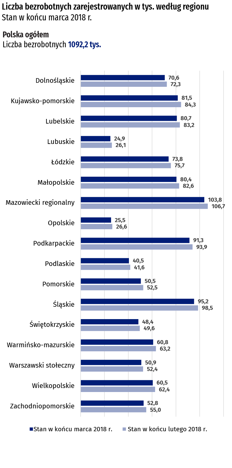 Bezrobotni zarejestrowani i stopa bezrobocia. Stan w końcu marca 2018 r.