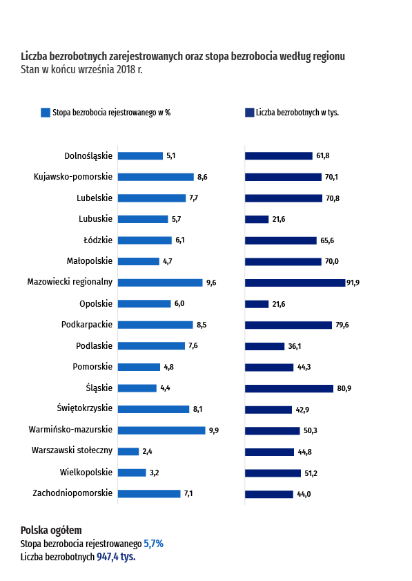 Bezrobotni zarejestrowani i stopa bezrobocia. Stan w końcu września 2018 r.