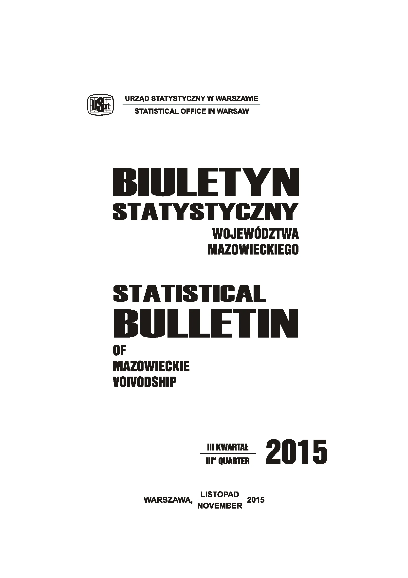 Biuletyn Statystyczny Województwa Mazowieckiego. III kwartał 2015 r.
