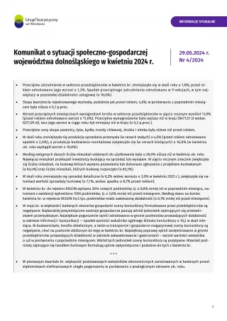 - Komunikat o sytuacji społeczno-gospodarczej województwa dolnośląskiego w marcu 2024 r.
