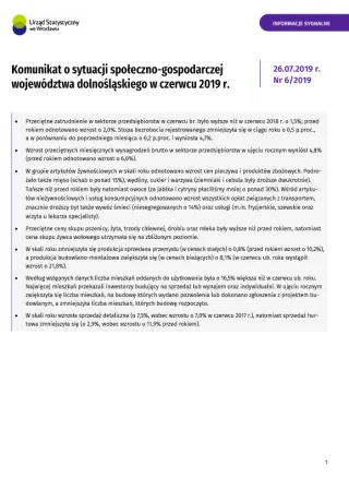 - Komunikat o sytuacji społeczno-gospodarczej województwa dolnośląskiego w lipcu 2019 r.