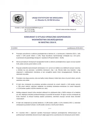 Komunikat o sytuacji społeczno-gospodarczej województwa dolnośląskiego w kwietniu 2014 r.