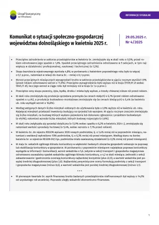 - Komunikat o sytuacji społeczno-gospodarczej województwa dolnośląskiego w kwietniu 2024 r.
