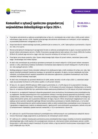 - Komunikat o sytuacji społeczno-gospodarczej województwa dolnośląskiego w sierpniu 2024 r.