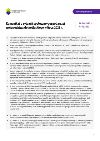- Komunikat o sytuacji społeczno-gospodarczej województwa dolnośląskiego w lipcu 2024 r.