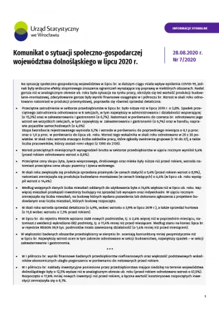 - Komunikat o sytuacji społeczno-gospodarczej województwa dolnośląskiego w sierpniu 2020 r.