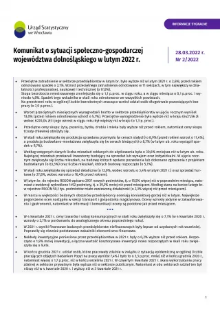 - Komunikat o sytuacji społeczno-gospodarczej województwa dolnośląskiego w marcu 2022 r.