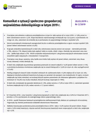 Komunikat o sytuacji społeczno-gospodarczej województwa dolnośląskiego w lutym 2019 r.