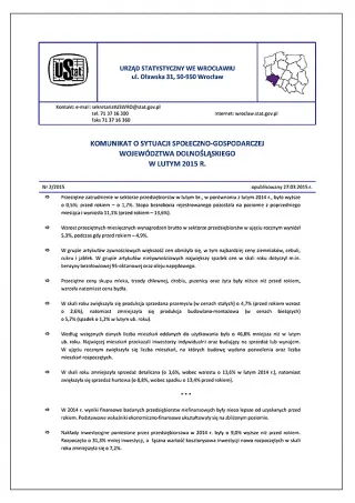 - Komunikat o sytuacji społeczno-gospodarczej województwa dolnośląskiego w kwietniu 2015 r.