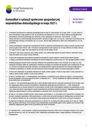 Komunikat o sytuacji społeczno-gospodarczej województwa dolnośląskiego w maju 2021 r.