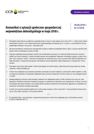 Komunikat o sytuacji społeczno-gospodarczej województwa dolnośląskiego w maju 2018 r.