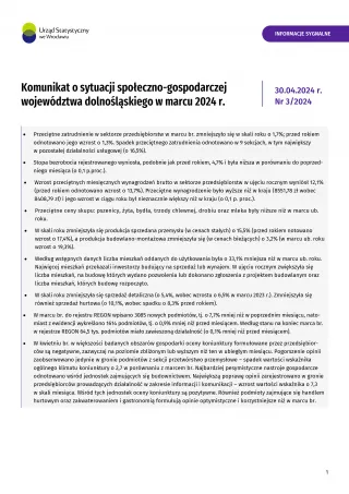 - Komunikat o sytuacji społeczno-gospodarczej województwa dolnośląskiego w kwietniu 2024 r.