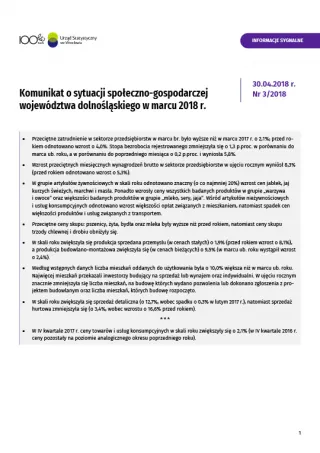 - Komunikat o sytuacji społeczno-gospodarczej województwa dolnośląskiego w kwietniu 2018 r.