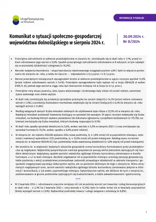 Komunikat o sytuacji społeczno-gospodarczej województwa dolnośląskiego w sierpniu 2024 r.