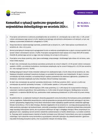 - Komunikat o sytuacji społeczno-gospodarczej województwa dolnośląskiego w październiku 2024 r.
