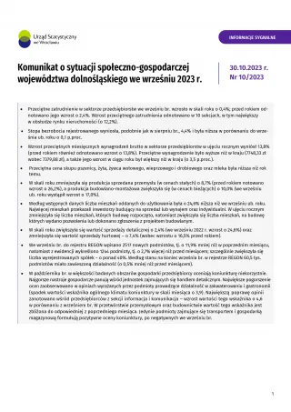 - Komunikat o sytuacji społeczno-gospodarczej województwa dolnośląskiego w październiku 2023 r.