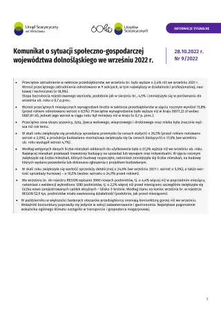 - Komunikat o sytuacji społeczno-gospodarczej województwa dolnośląskiego w sierpniu 2022 r.