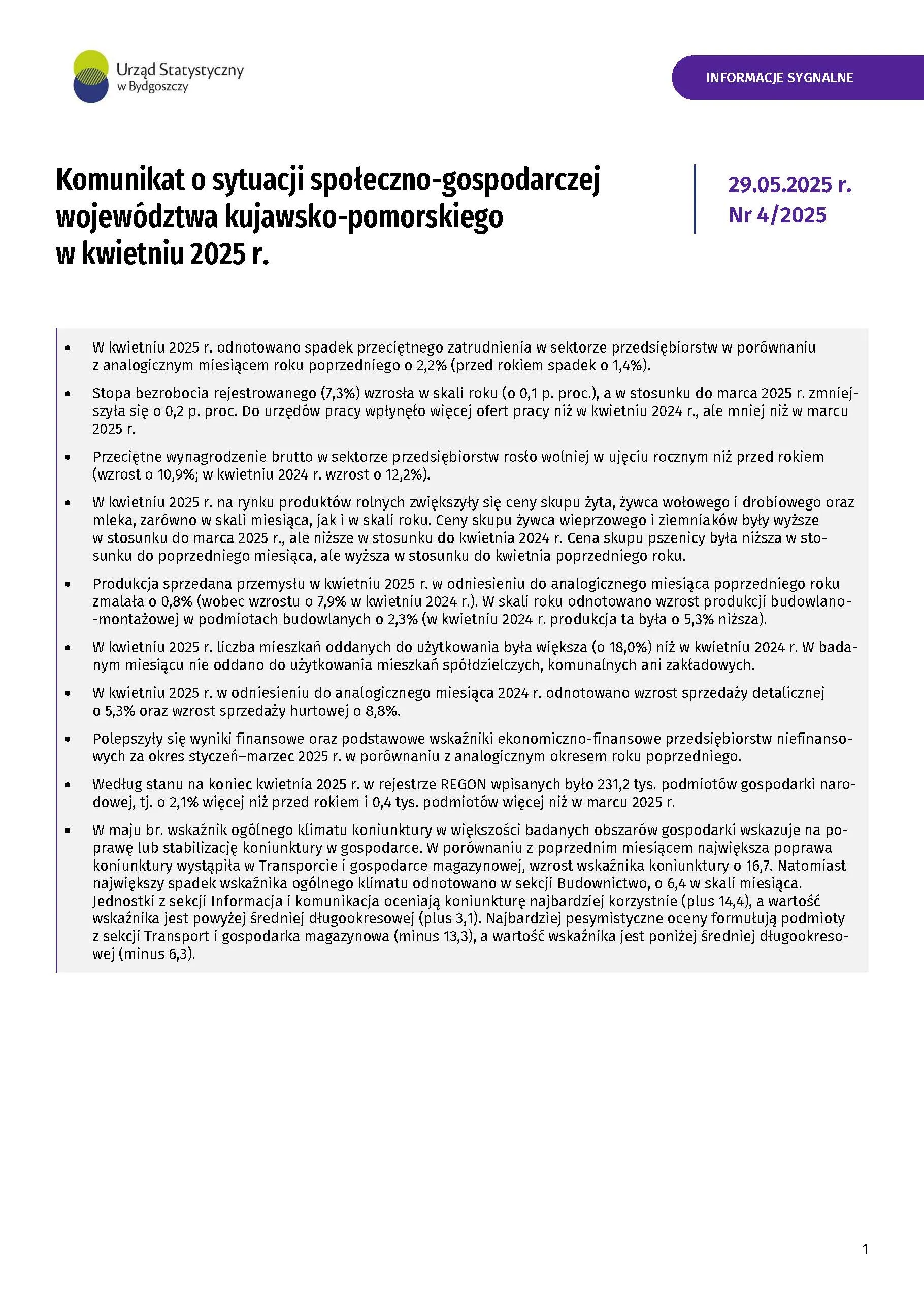- Komunikat o sytuacji społeczno-gospodarczej województwa kujawsko-pomorskiego - maj 2025 r.