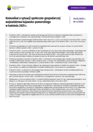 Komunikat o sytuacji społeczno-gospodarczej województwa kujawsko-pomorskiego - kwiecień 2025 r.