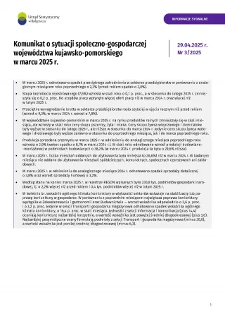 Komunikat o sytuacji społeczno-gospodarczej województwa kujawsko-pomorskiego - marzec 2025 r.