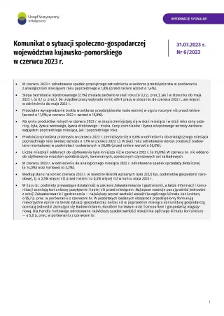 Komunikat o sytuacji społeczno-gospodarczej województwa kujawsko-pomorskiego - czerwiec 2023 r.