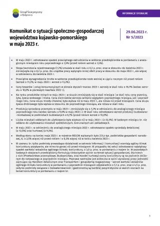 Komunikat o sytuacji społeczno-gospodarczej województwa kujawsko-pomorskiego - maj 2023 r.