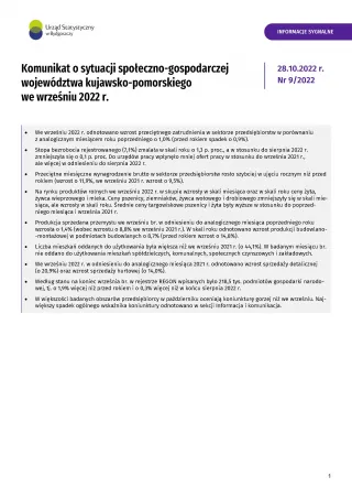 Komunikat o sytuacji społeczno-gospodarczej województwa kujawsko-pomorskiego - wrzesień 2022 r.