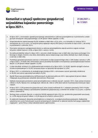 - Komunikat o sytuacji społeczno-gospodarczej województwa kujawsko-pomorskiego - sierpień 2021 r.