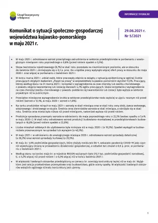 Komunikat o sytuacji społeczno-gospodarczej województwa kujawsko-pomorskiego - maj 2021 r.