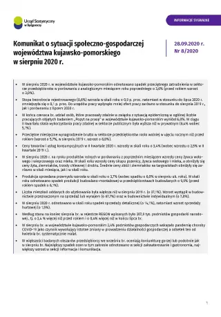 Komunikat o sytuacji społeczno-gospodarczej województwa kujawsko-pomorskiego - sierpień 2020 r.