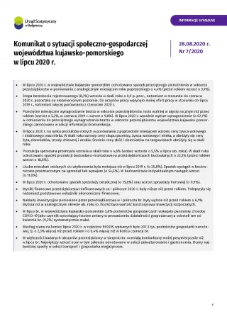 - Komunikat o sytuacji społeczno-gospodarczej województwa kujawsko-pomorskiego - sierpień 2020 r.