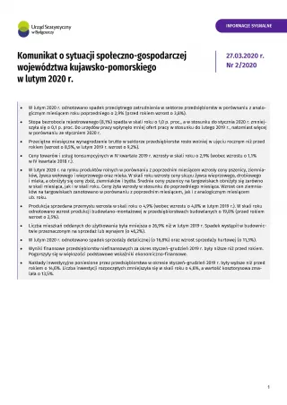 Komunikat o sytuacji społeczno-gospodarczej województwa kujawsko-pomorskiego - luty 2020 r.