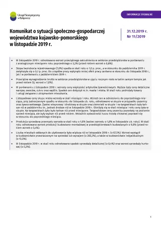 Komunikat o sytuacji społeczno-gospodarczej województwa kujawsko-pomorskiego - listopad 2019 r.