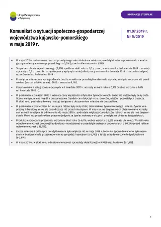 Komunikat o sytuacji społeczno-gospodarczej województwa kujawsko-pomorskiego - maj 2019 r.
