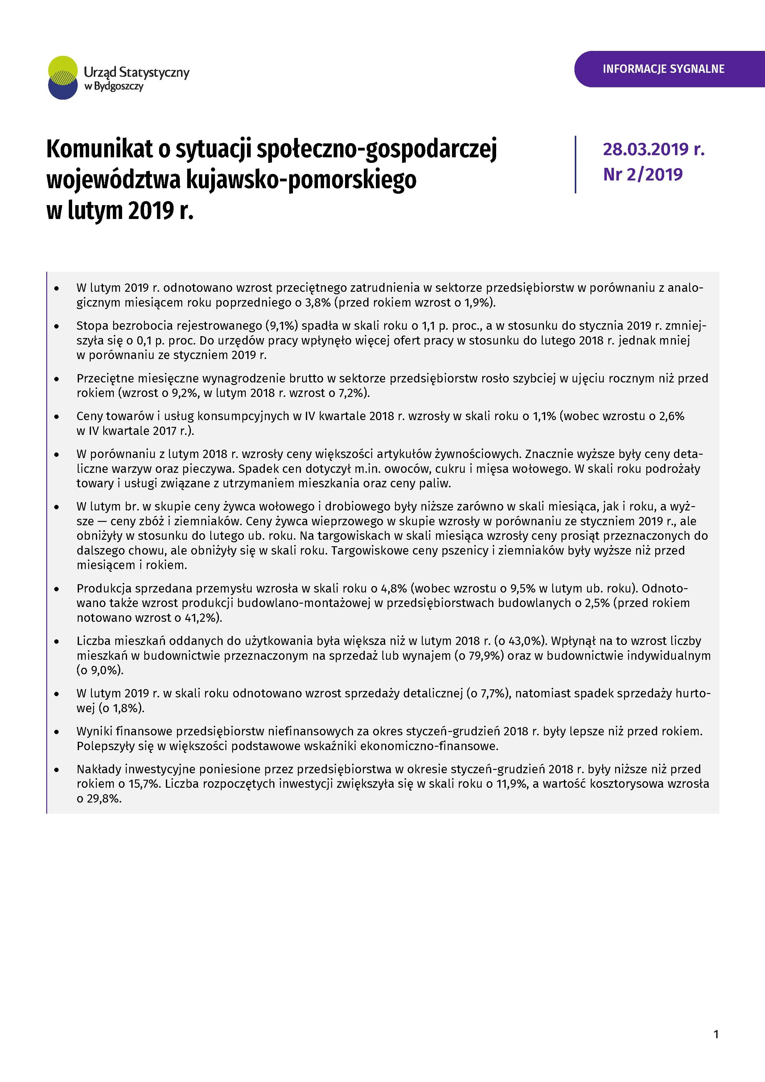 Komunikat o sytuacji społeczno-gospodarczej województwa kujawsko-pomorskiego - luty 2019 r.