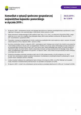 Komunikat o sytuacji społeczno-gospodarczej województwa kujawsko-pomorskiego - styczeń 2019 r.