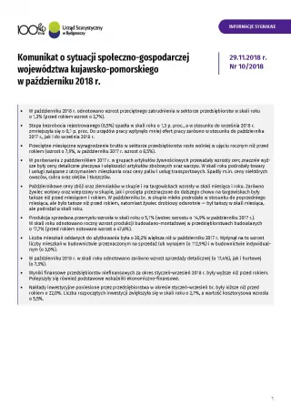 Komunikat o sytuacji społeczno-gospodarczej województwa kujawsko-pomorskiego - październik 2018 r.