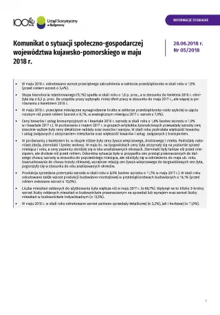 Komunikat o sytuacji społeczno-gospodarczej województwa kujawsko-pomorskiego - maj 2018 r.