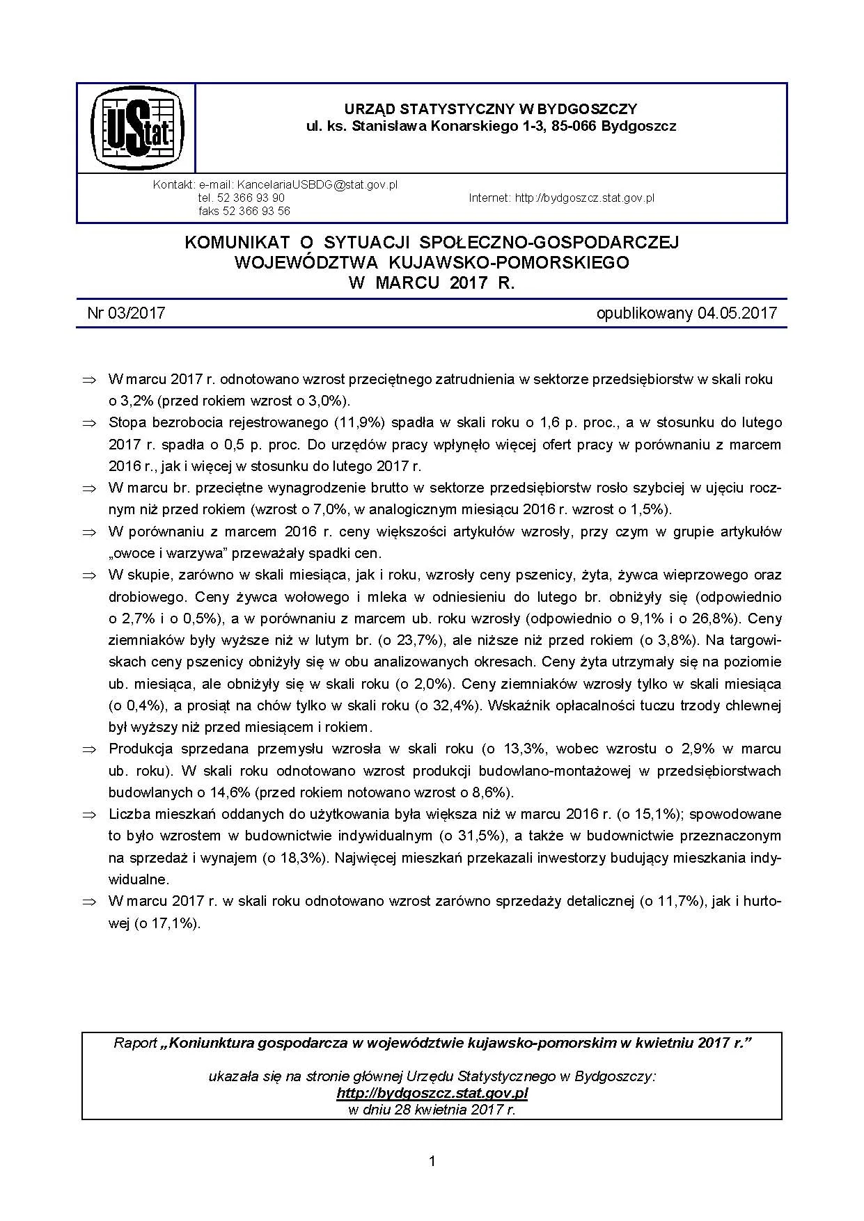 - Komunikat o sytuacji społeczno-gospodarczej województwa kujawsko-pomorskiego - kwiecień 2017 r.