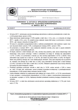 Komunikat o sytuacji społeczno-gospodarczej województwa kujawsko-pomorskiego - marzec 2017 r.