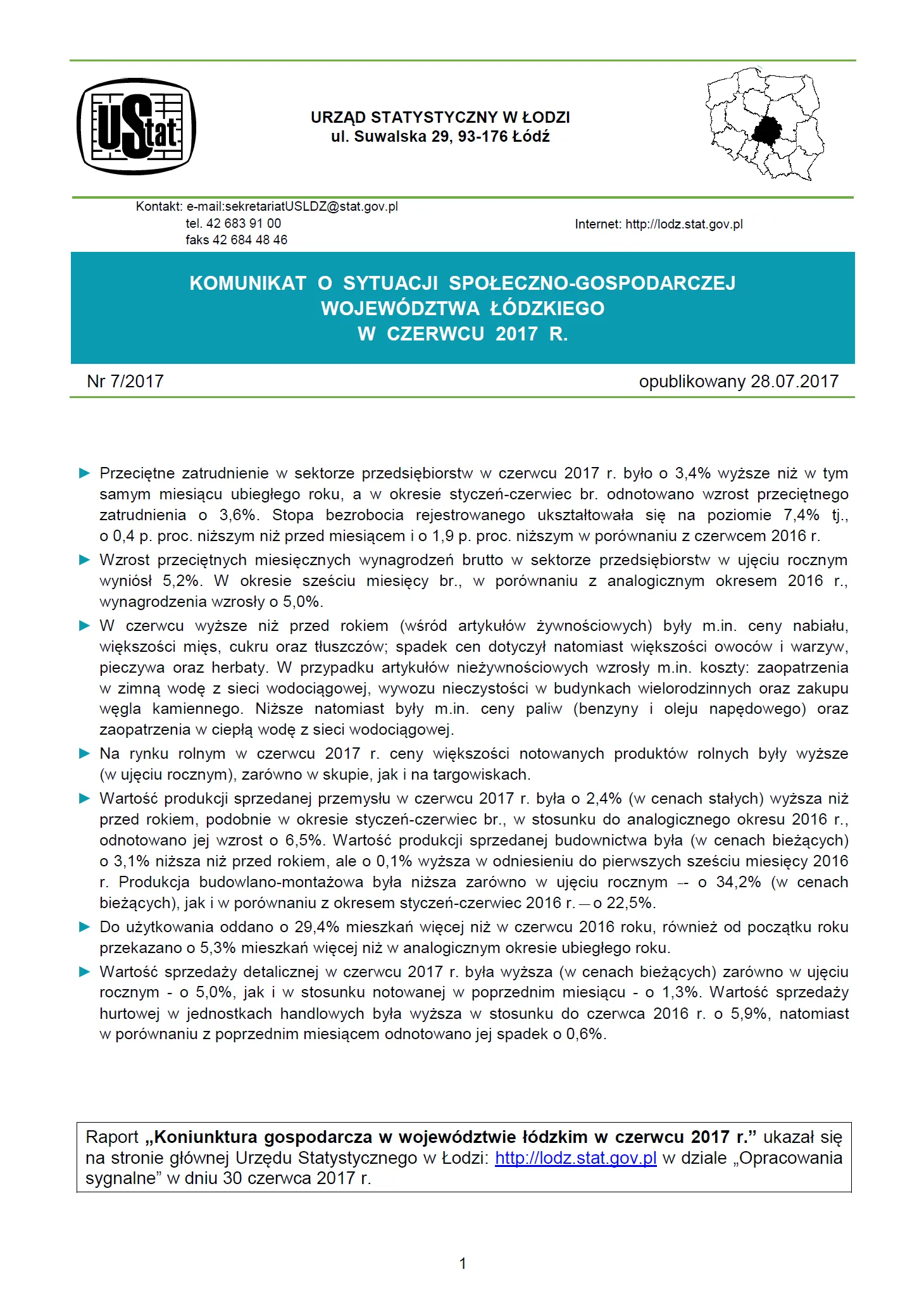 - Komunikat o sytuacji społeczno-gospodarczej województwa łódzkiego (lipiec 2017 r.)
