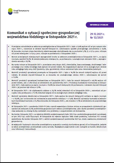 - Komunikat o sytuacji społeczno-gospodarczej województwa łódzkiego (grudniu 2021 r.)