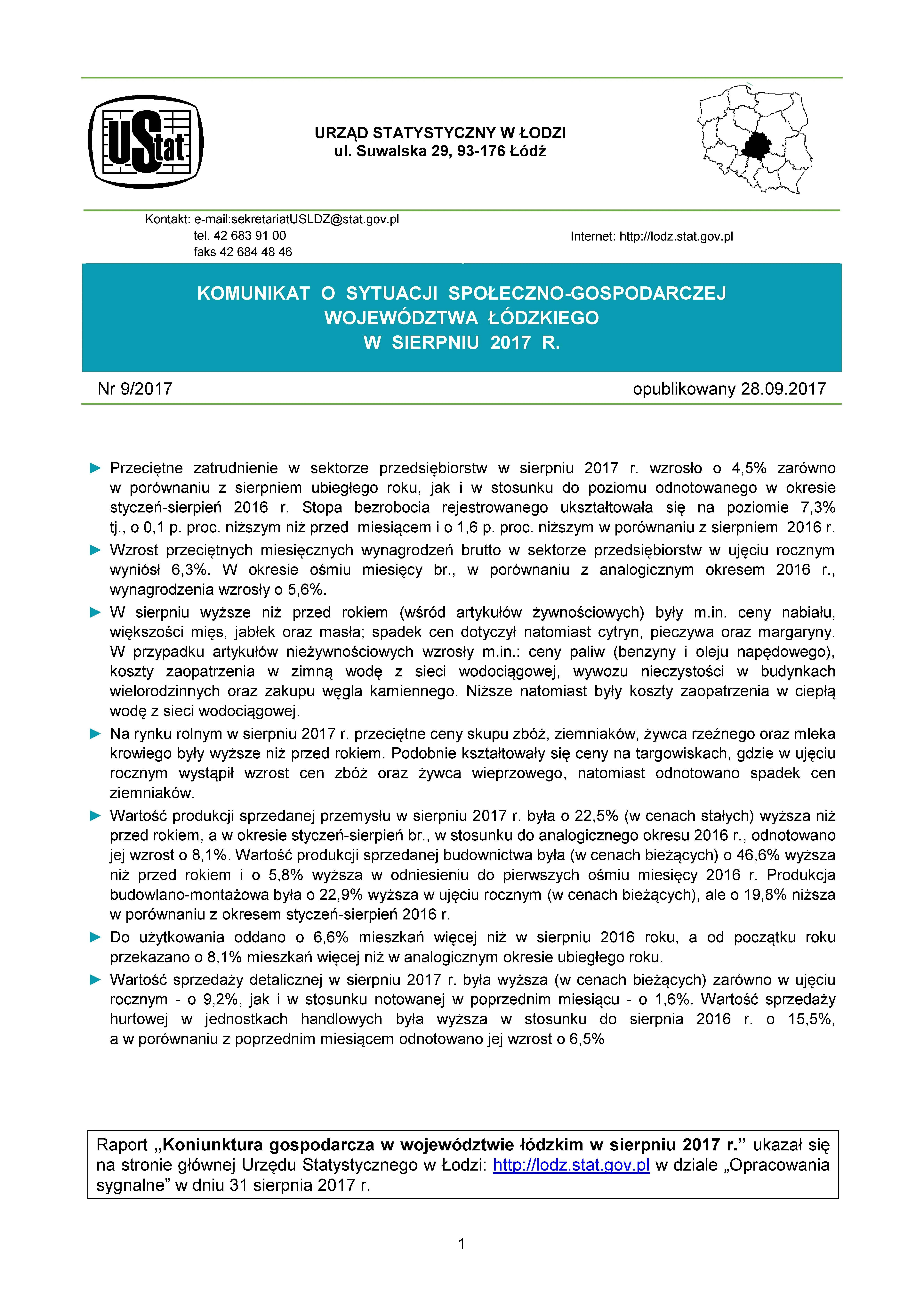 - Komunikat o sytuacji społeczno-gospodarczej województwa łódzkiego (wrzesień 2017 r.)